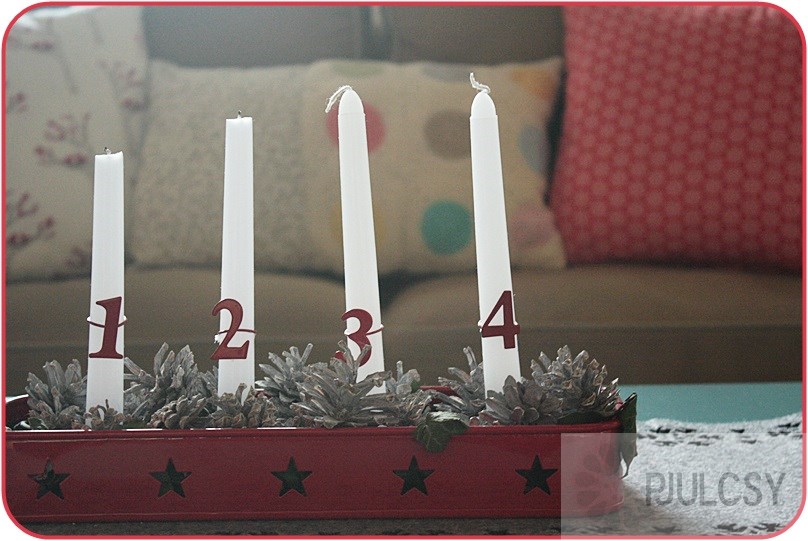 A mi adventi díszeink kimerültek az idén ennyiben és néhány piros gömbben, köszönhetően a rengeteg munkának és a családon végigszaladó kósza vírusnak. Nem vagyok rá büszke és fogadkozhatnék, hogy majd jövőre másképp